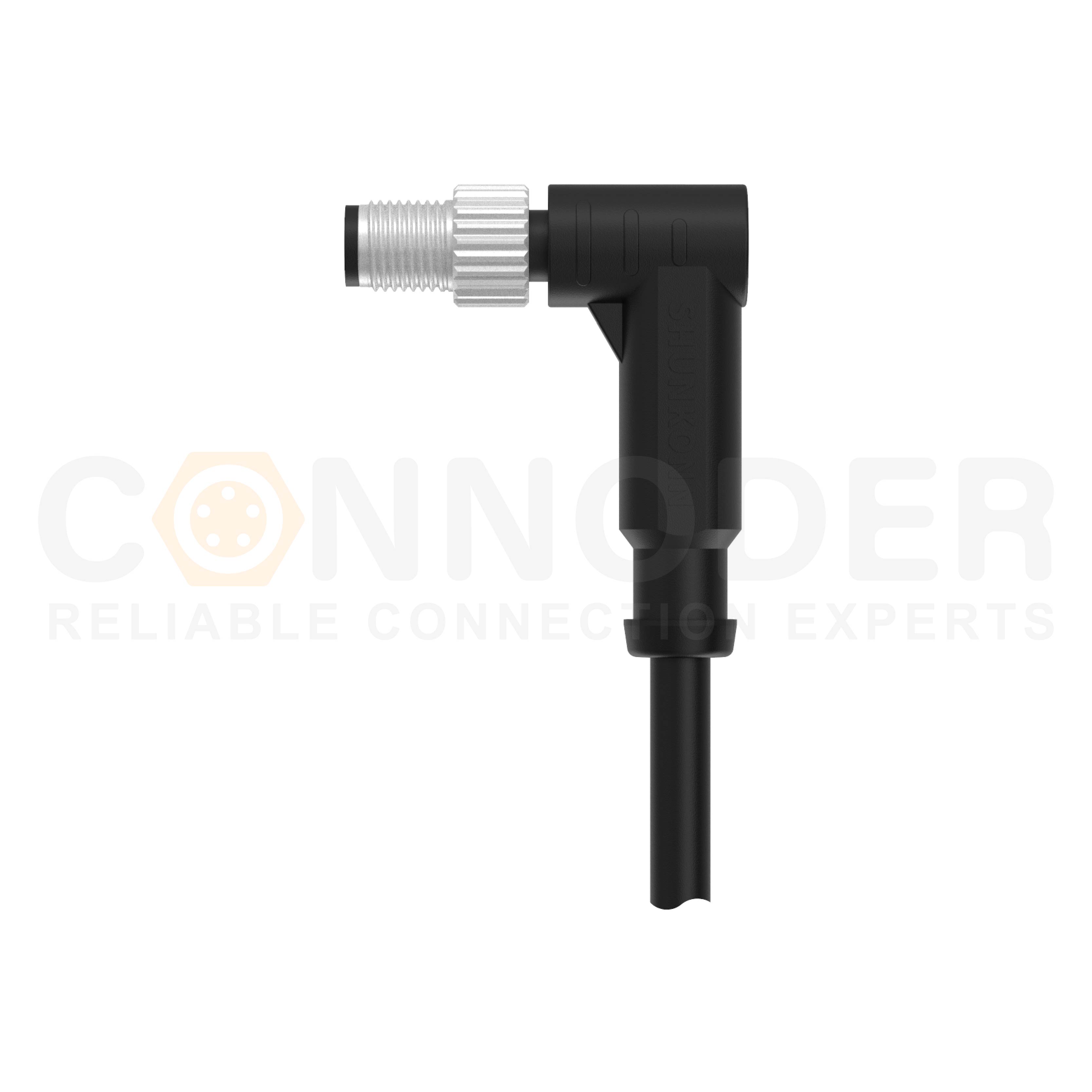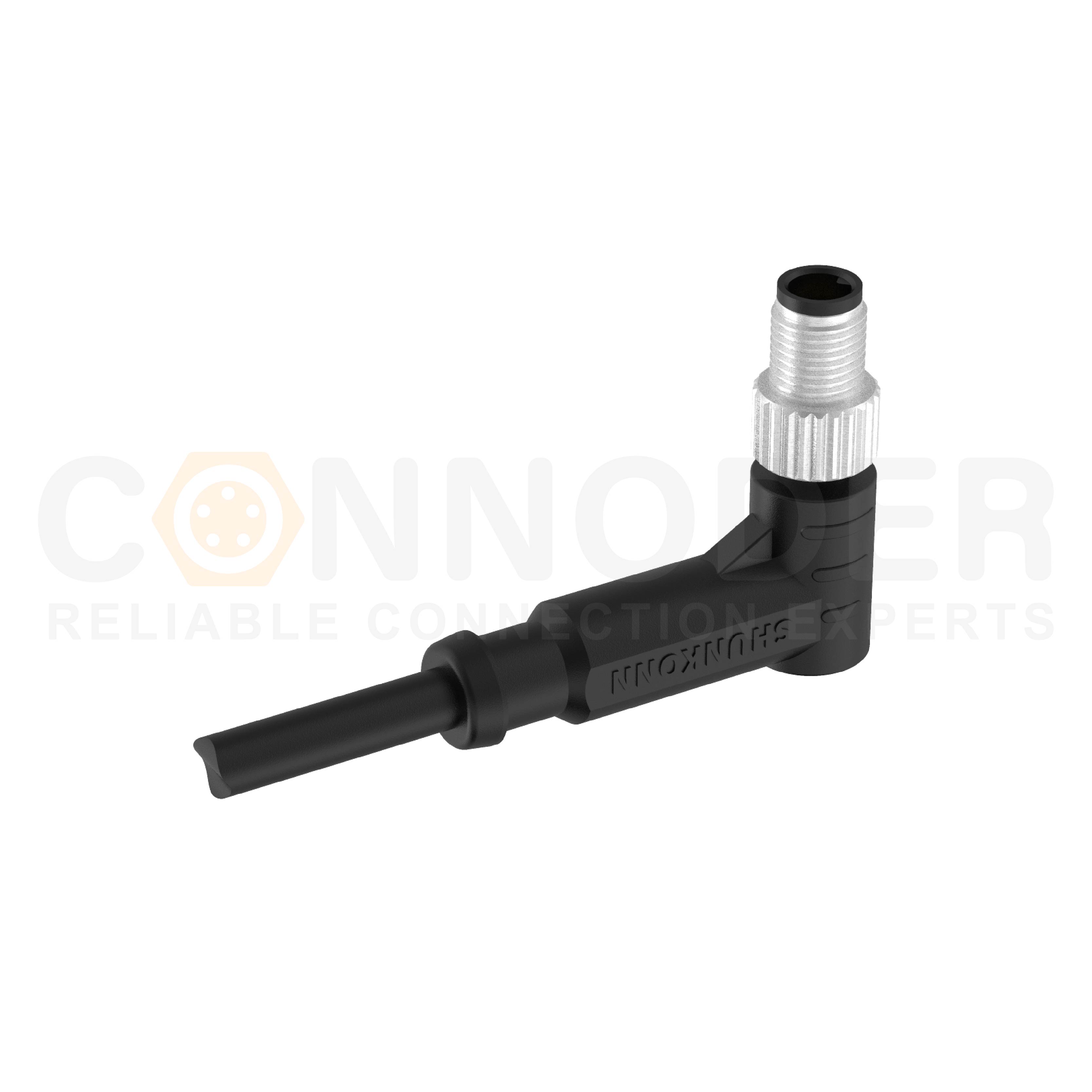 M5连接线A扣公端弯脚90度包胶成型预铸式3-4芯焊线式