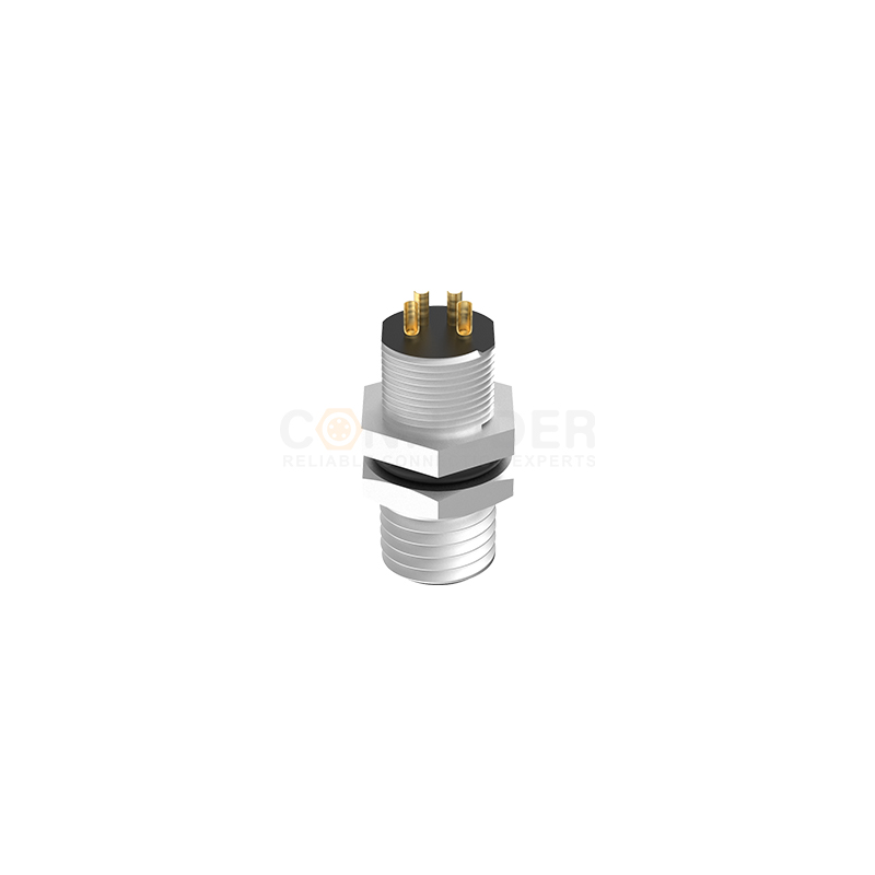 M8圆形连接器A编码公头面板式板前安装焊线式