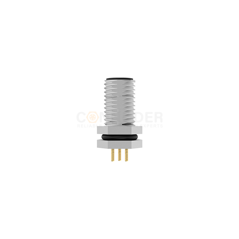M8圆形连接器A编码公头面板式板后安装3-8芯插板式M8*0.5