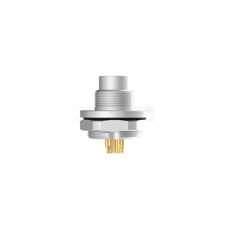 ☑该产品为 M9 圆形连接器公端,采用面板式板前安装设计。可从面板正面直接操作安装,步骤简洁高效,无需额外拆卸设备,适配各类面板集成需求