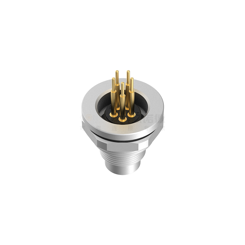M9圆形连接器公端面板式板后安装2-8P插板式M12x0.5