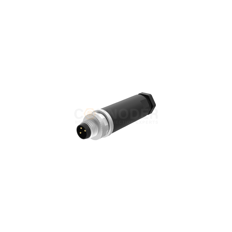 M8圆形连接器公端直式塑胶组装3-8芯焊线式