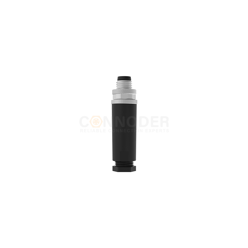 M8圆形连接器公端直式塑胶组装焊线式